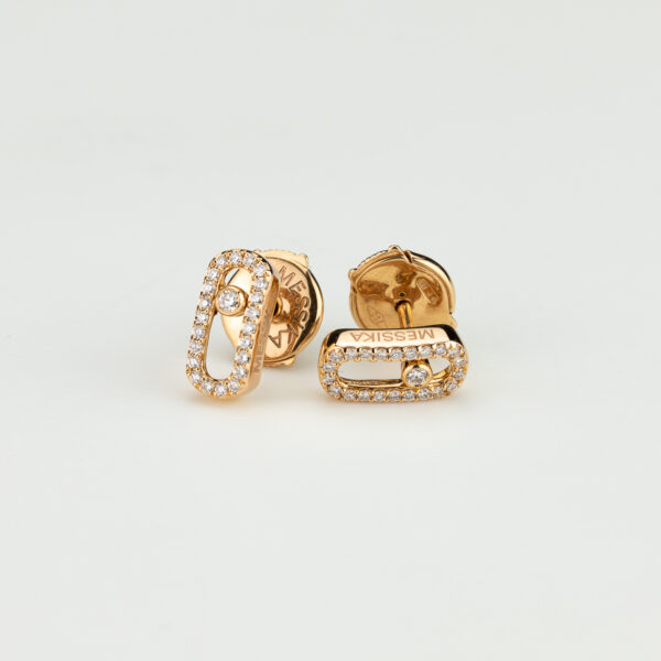 18 karaat Messika Move Uno roségouden oorstekers beet met 46 briljanten. Totaal 0.16 ct.
